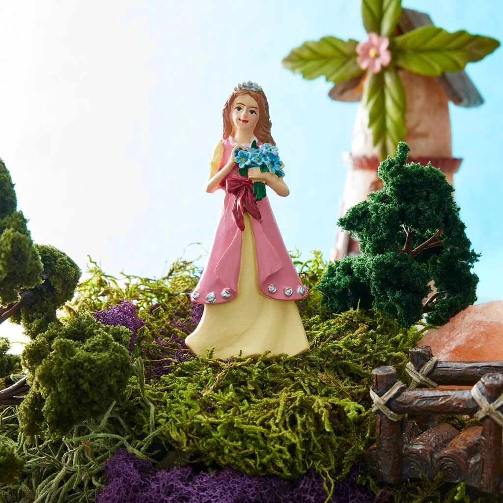 Add charm and personality to a fairy tale scene using this miniature princess figurine. Ready for a stroll through the gardens with flowers in hand, place her with greenery and friendly critters to complete the setting.