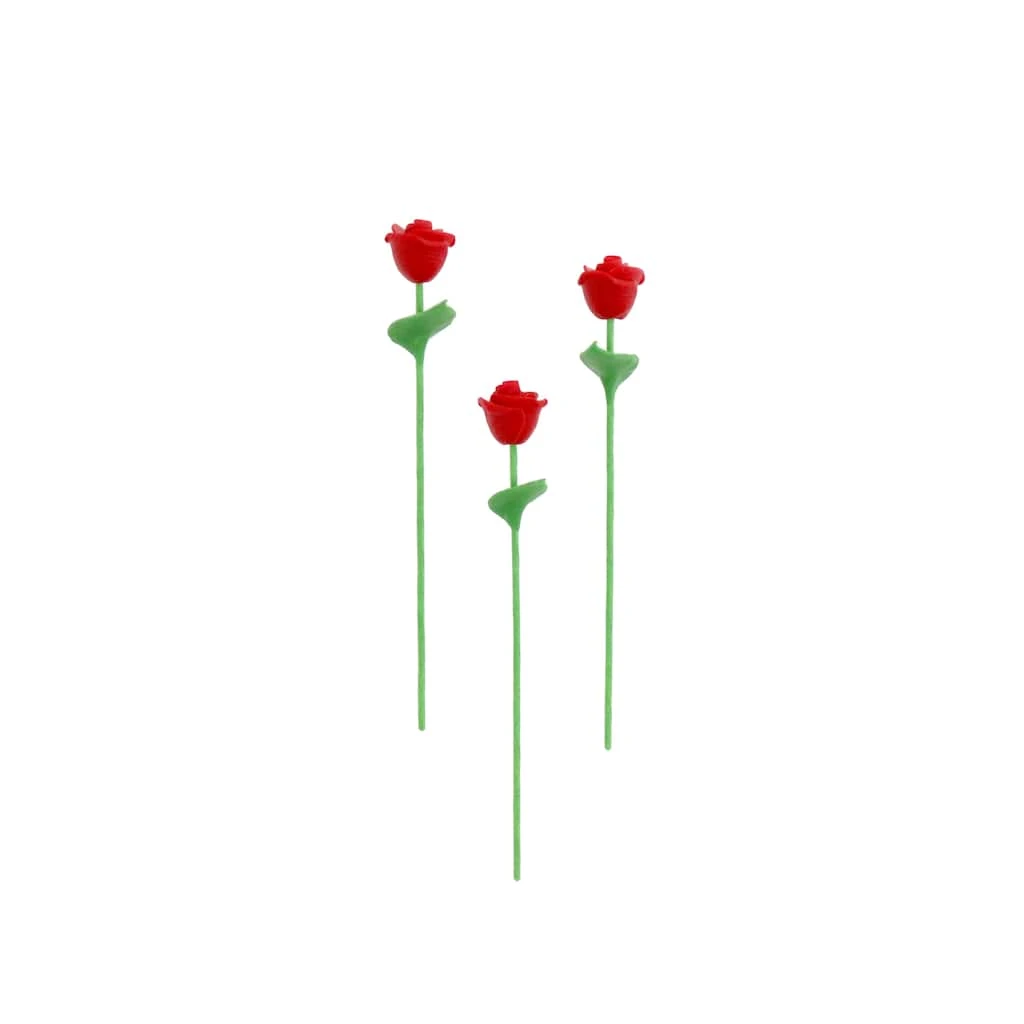 Add charm to a dollhouse scene or floral accents to a handmade gift with these miniature red rose stems. Featuring beautiful handmade details, these roses will look lovely in a tiny vase on a kitchen counter or bookshelf.