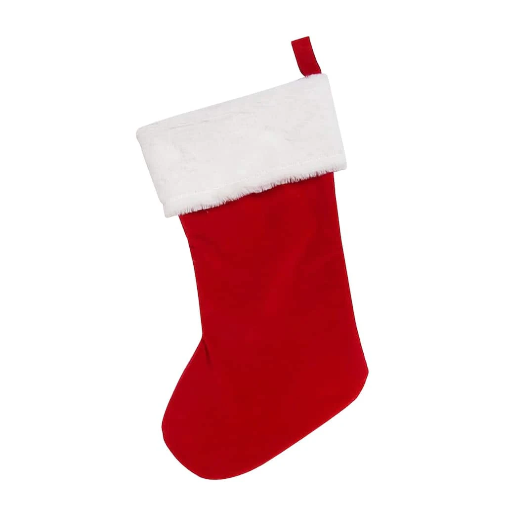 This charming Christmas stocking, featuring a white cuff, is a fantastic way to complete your holiday decorating. Hang this festive stocking from your mantel to add extra cheer to your home for the season.