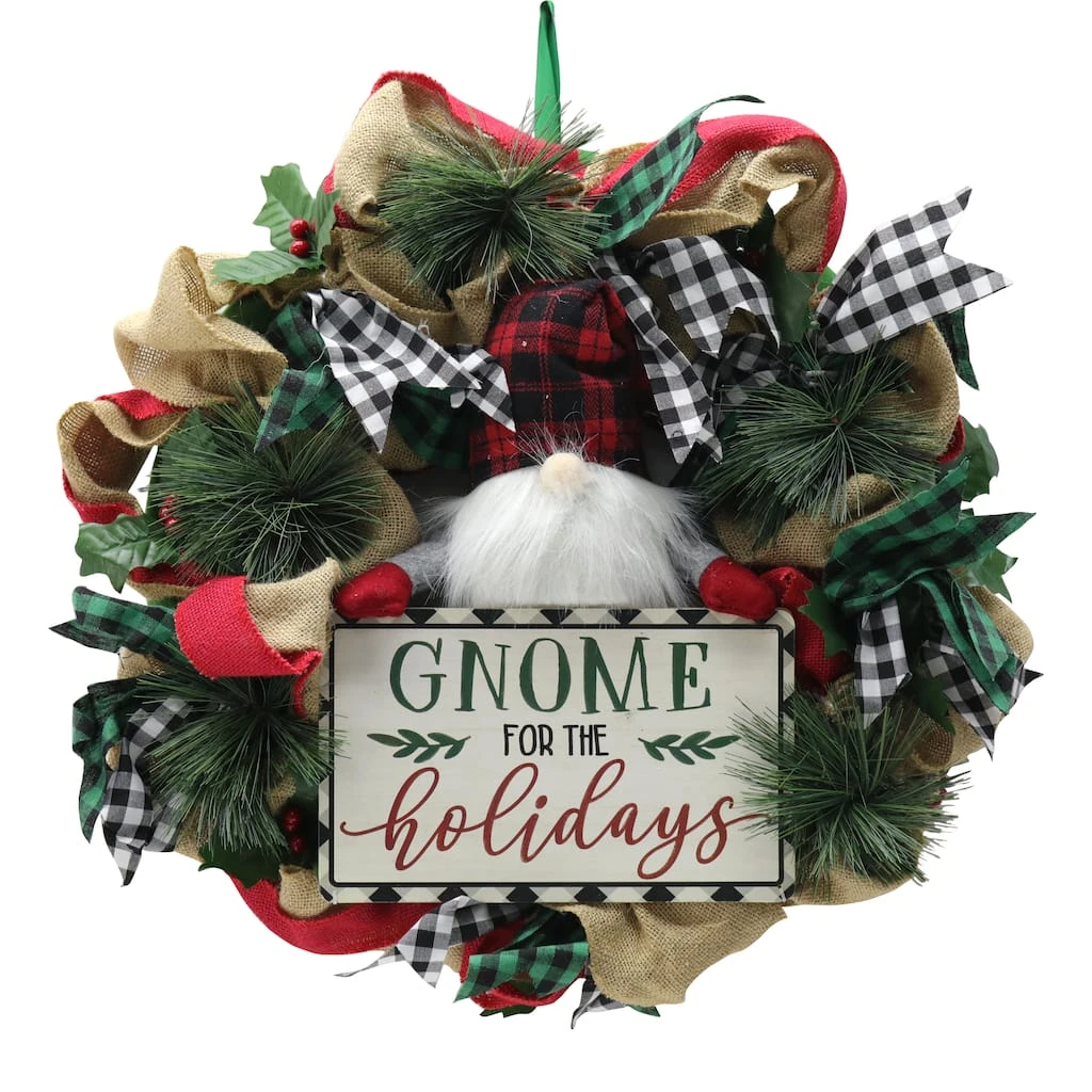 This gnome sign wreath is perfect for showing off in your living area. Place it on your wall, window, or mantel to lend your home a festive touch.
