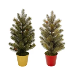 Decorate your home this holiday season with this artificial Christmas tree by Ashland. Placed in a tin pot, this Christmas tree will be a nice accent in your living room or bedroom.