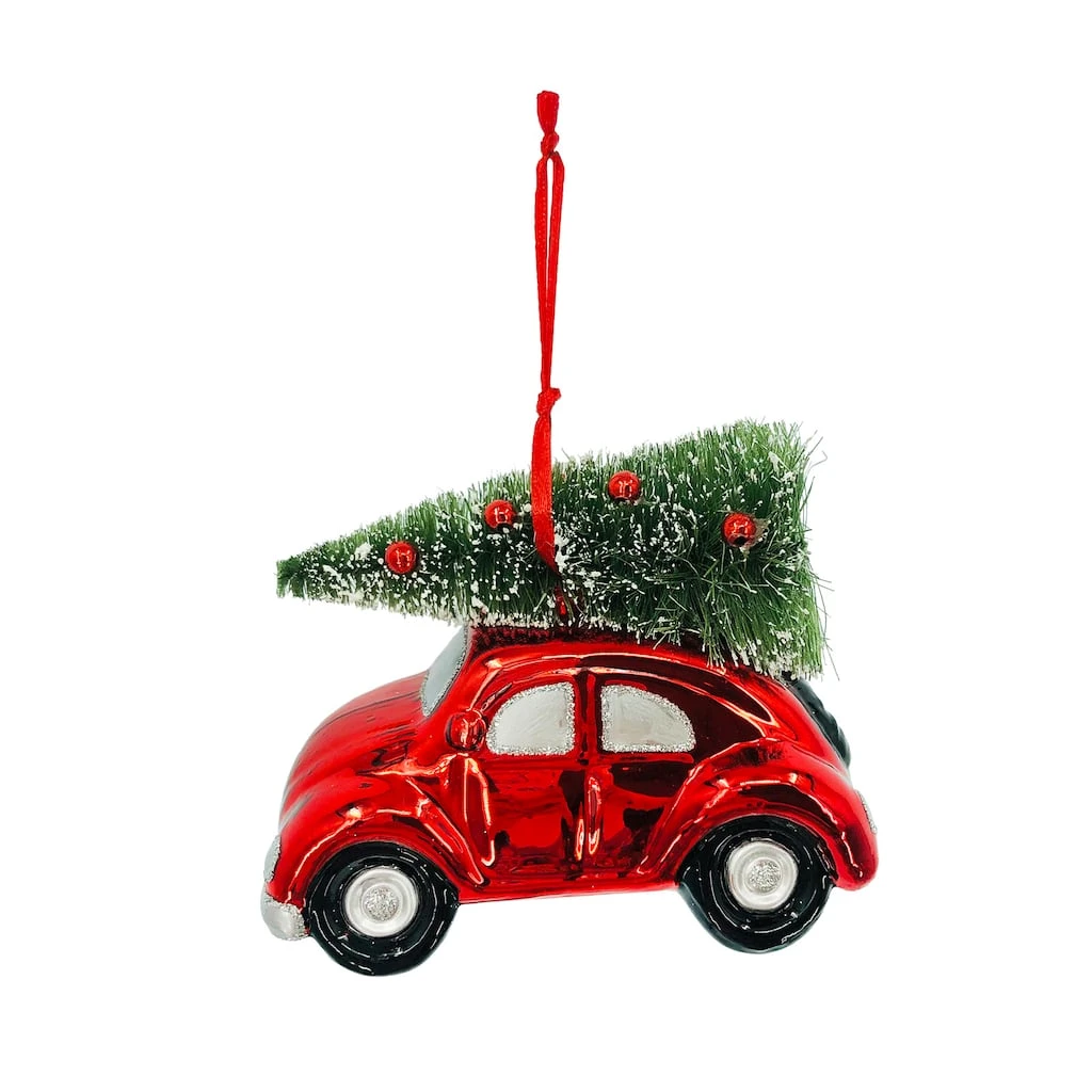 Outlet 😀 4” Car with Tree Collectible Glass Christmas Ornament by Ashland® ⌛