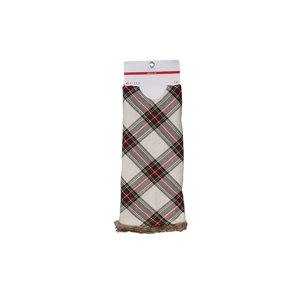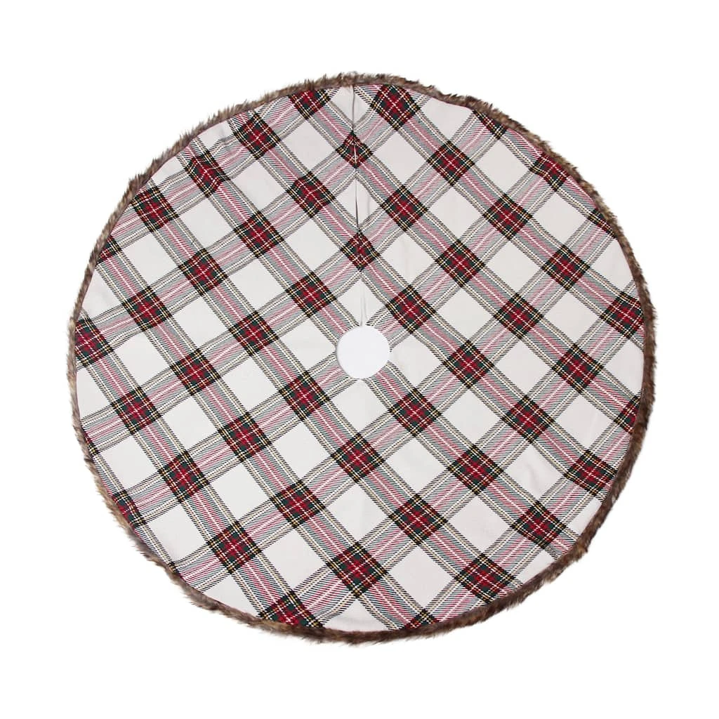 This white and red plaid tree skirt is guaranteed to complement your tree. Team it with bright tree ornaments and lights for the perfect holiday display.