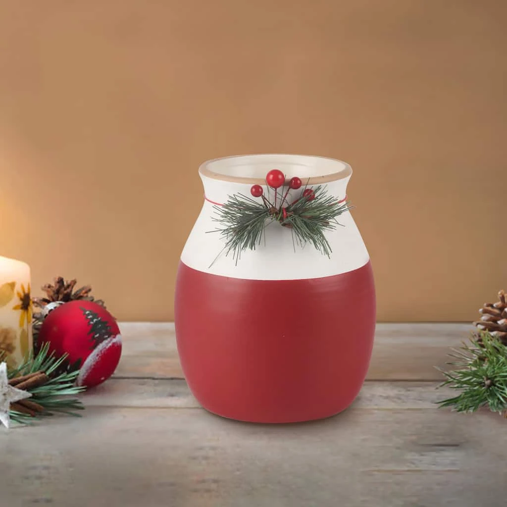 Decorate your home this holiday season with this pretty holly vase by Ashland. Fill it with faux poinsettia and greenery stems for a festive display.