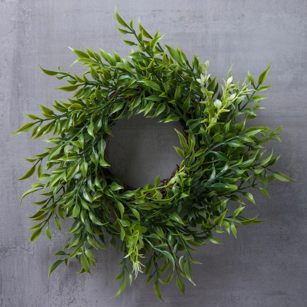 Add some lush green hues to your dΓ©cor with this ficus wreath by Ashland. You can also accentuate it with burlap ribbons.
