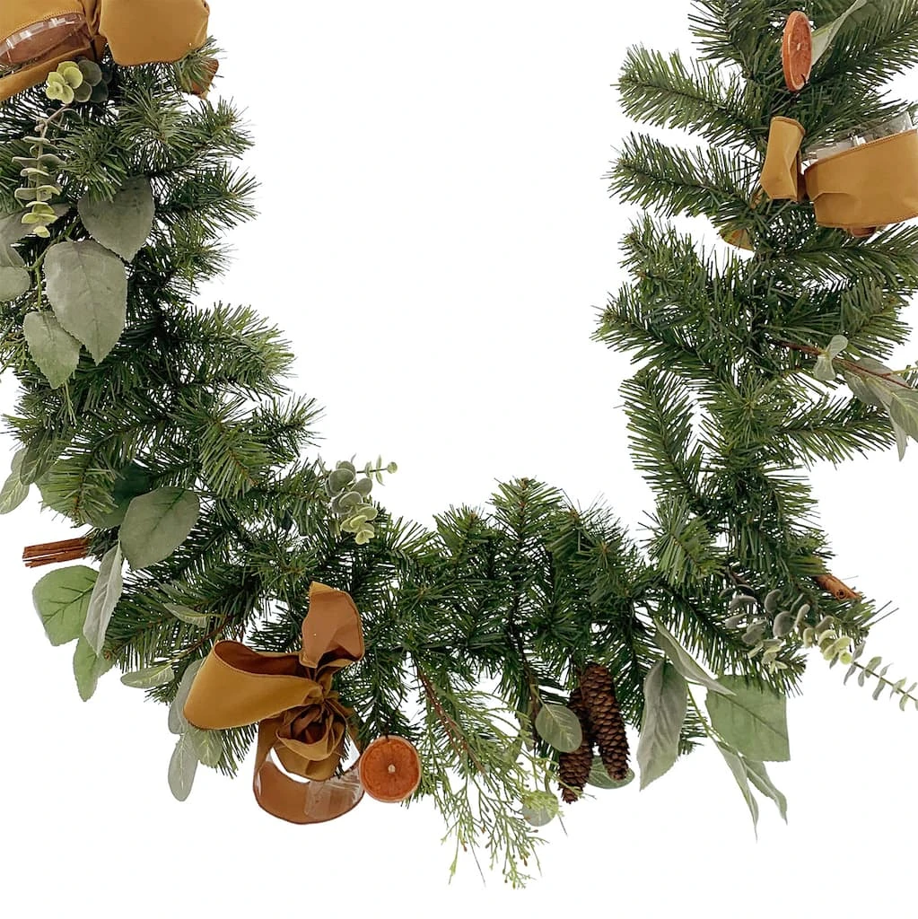 Add some winter flair to your décor with this holiday spice pine garland accented with bows from Ashland. Wind around a banister or drape across your fireplace mantel paired with seasonal accent pieces to complete the look.