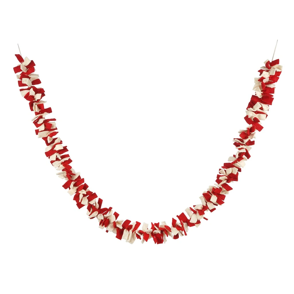 Bring a touch of Christmas magic to your decorating with this fun garland of red and white felt ties. This playful string makes a great addition to your tree, or drape across a mantel or bannister paired with sparkling lights for a festive display full of holiday cheer.