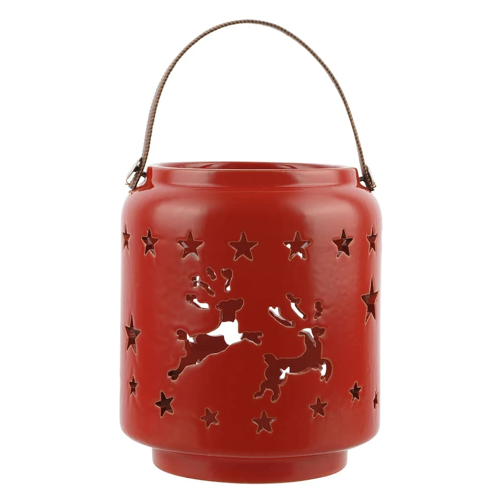 Bring a touch of Christmas magic to your space by incorporating the lovely, soft glow of candlelight into your décor with this charming red tealight lantern. Featuring reindeer and star cutouts for the light to shine through, this piece is sure to add a festive feel to your home illuminating lush greenery and holiday collectibles on your living room mantel.