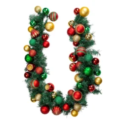 This ornament garland will add some jolly to your Christmas decorations this season. It is perfect for displaying on doors or windows in indoor or covered outdoor locations.