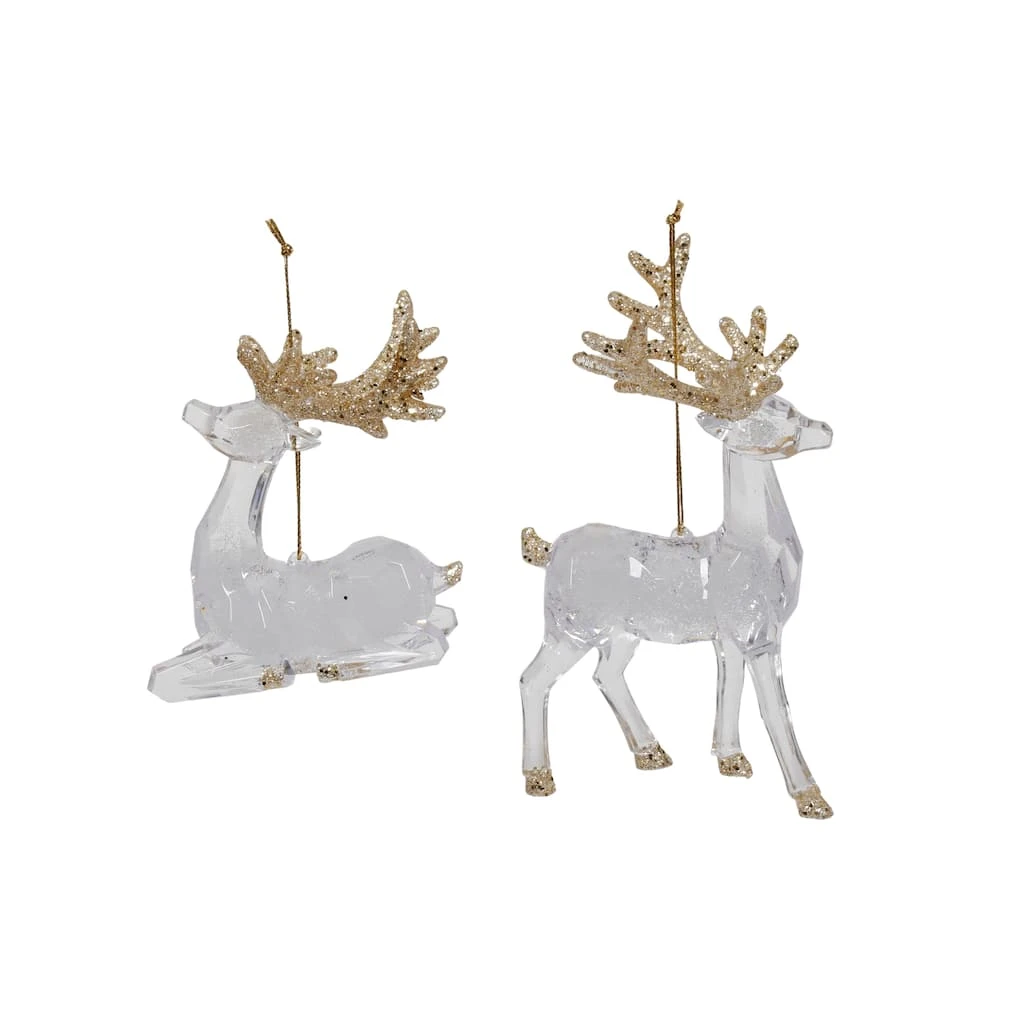 This beautiful clear and glittery gold deer ornament is perfect for sprucing up your holiday décor. Use it to embellish a tree, wreath, or garland for a whimsical display!