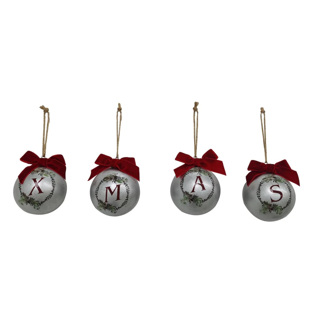 Add this festive monogram ball ornament to your holiday décor. Place it on a Christmas tree, tied with a bow on gift wrap, or display the ornament on an ornament stand.