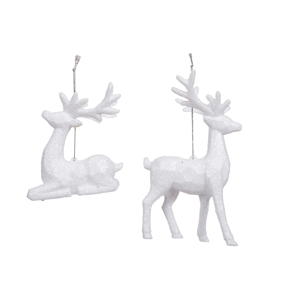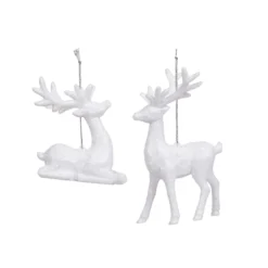 This beautiful glittery white deer ornament is perfect for sprucing up your holiday décor. Use it to embellish a tree, wreath, or garland for a whimsical display!
