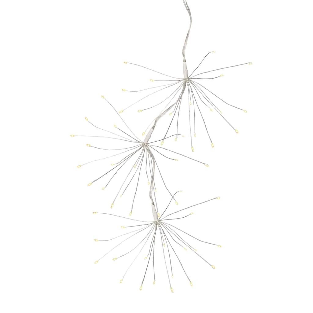 Make the season bright with this starburst LED crafting lights from Ashland! These battery-operated LED bulbs on silver wire starburst feature steady burning, twinkle, glisten, waves, sequential, chasing, fade, and combination light settings and a timer. This set of starburst crafting lights will be wonderful to display in your home for the Christmas season.