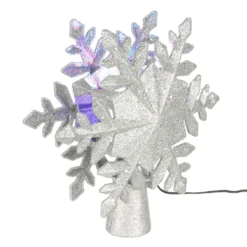 Discount ✔️ 9″ Silver Glitter Snowflake Multicolor Light Projector Tree Topper by Ashland® 😉