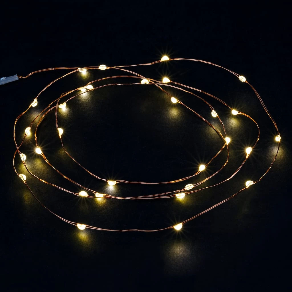 - 30 warm white LED lights with 2″ spacing