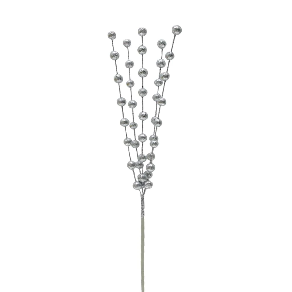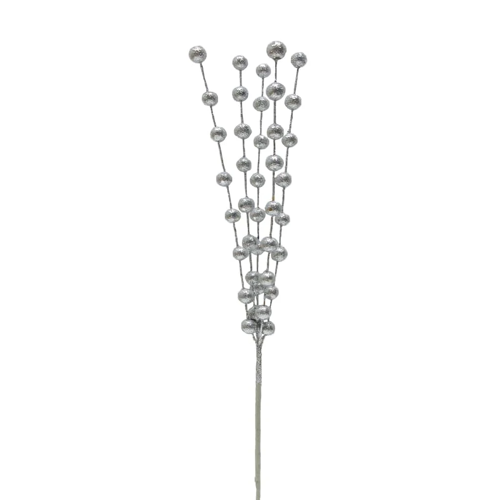 Give your holiday wreaths and floral arrangements a fun shimmery touch with this glittery silver berry pick from Ashland. This piece will beautifully accent snowy white blooms and evergreen branches in a ceramic vase for the Christmas season.