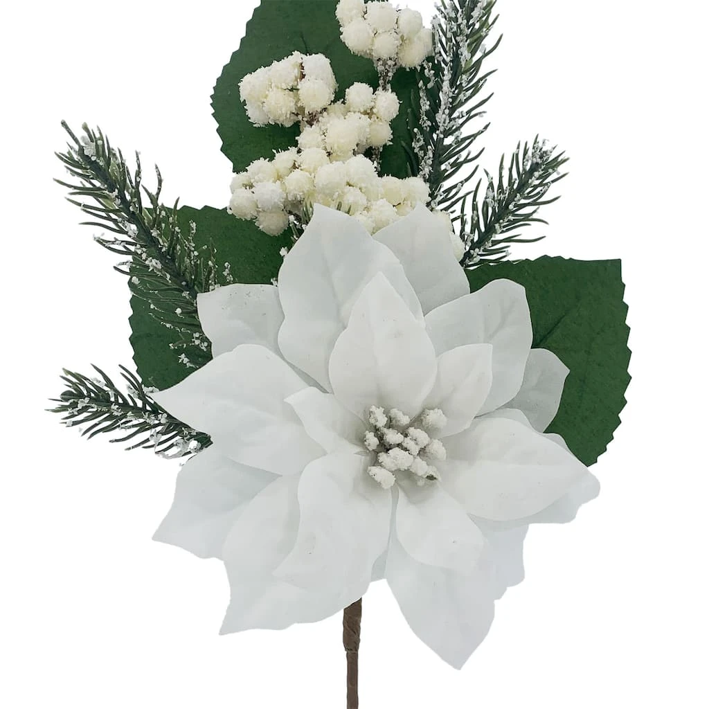 Decorate your home with this beautiful poinsettia and berry pick by Ashland. It will look lovely for the holiday season in a vase full of greenery.